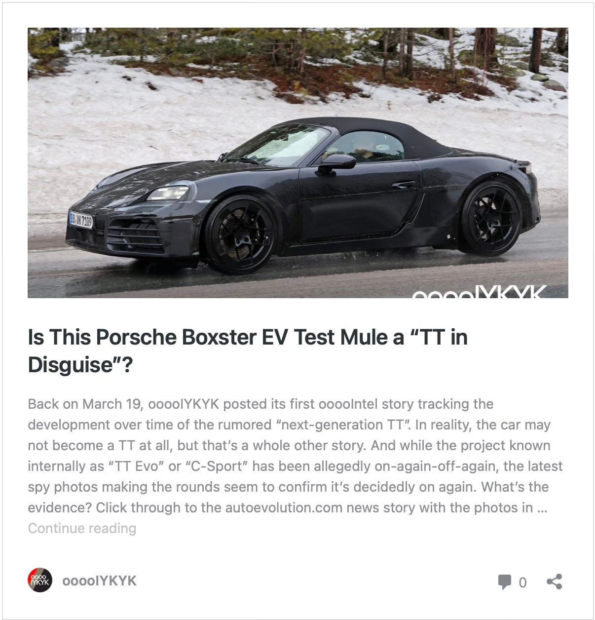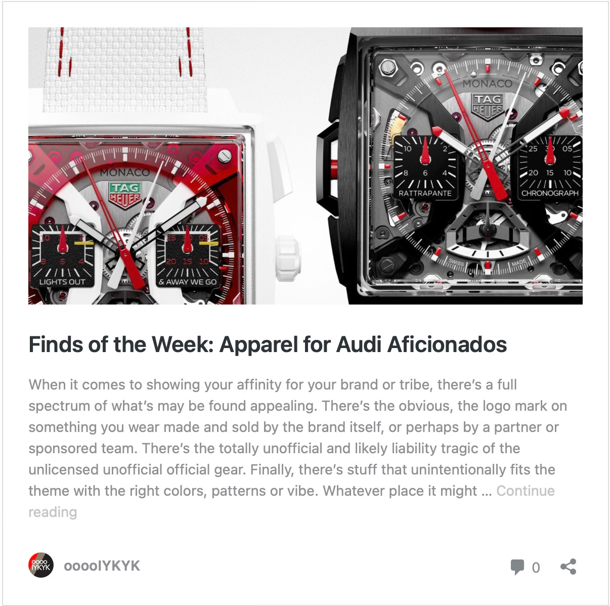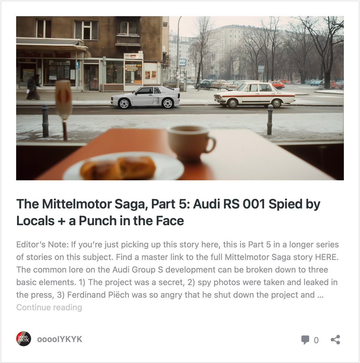 All of the current content and any new additions run real time throughout the week on ooooIYKYK, then are summarized and linked in the weekly newsletter that gets direct emailed to subscribers. If you’re not a subscriber, please consider doing so. If you are a subscriber, please recommend ooooIYKYK to your Audi enthusiast friends. For this title to continue and flourish, it needs to grow and sustain itself either through paid subscriptions or underwriting sponsors and advertisers. In order to achieve this, it needs your support.