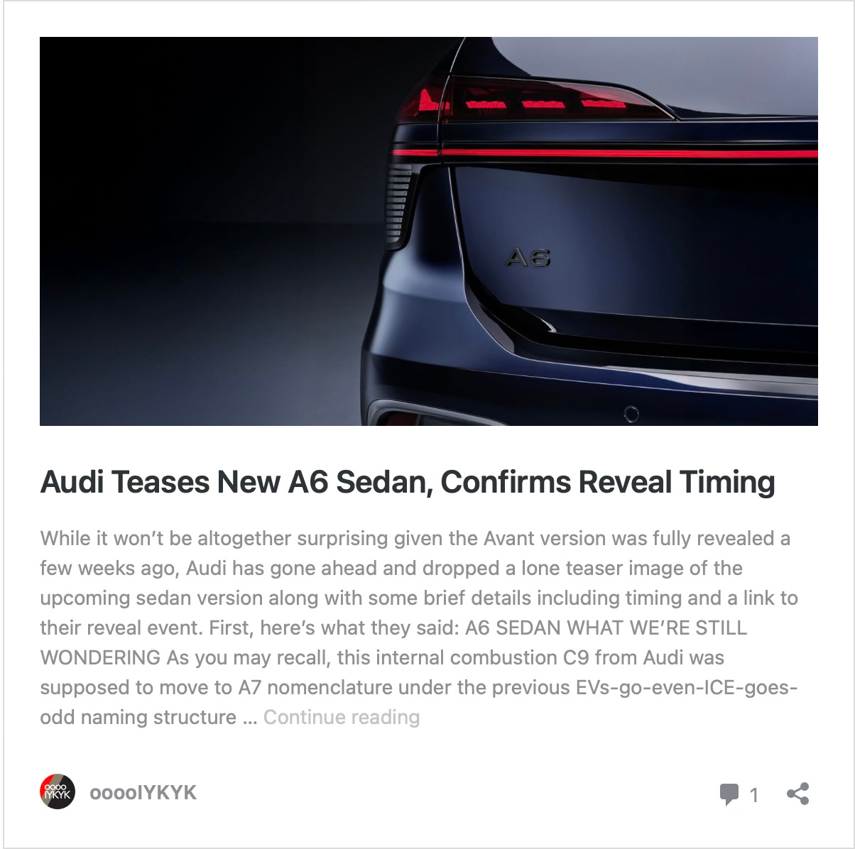 We’re now eight issues into this newsletter and platform focusing on Audi, which means eight weeks and effectively two months. In that time, I’ve begun to hit a stride and dial in some weekly features. In addition to timely news and coverage, I’ve begun to roll in regular features recurring weekly while doing my best to link the sources I use in order to more thoroughly keep you in the know. Given ooooIYKYK is now hitting cruising speed, I wanted to reach out to those of you who are regulars to get your input on what I’ve been doing and where this might go.
